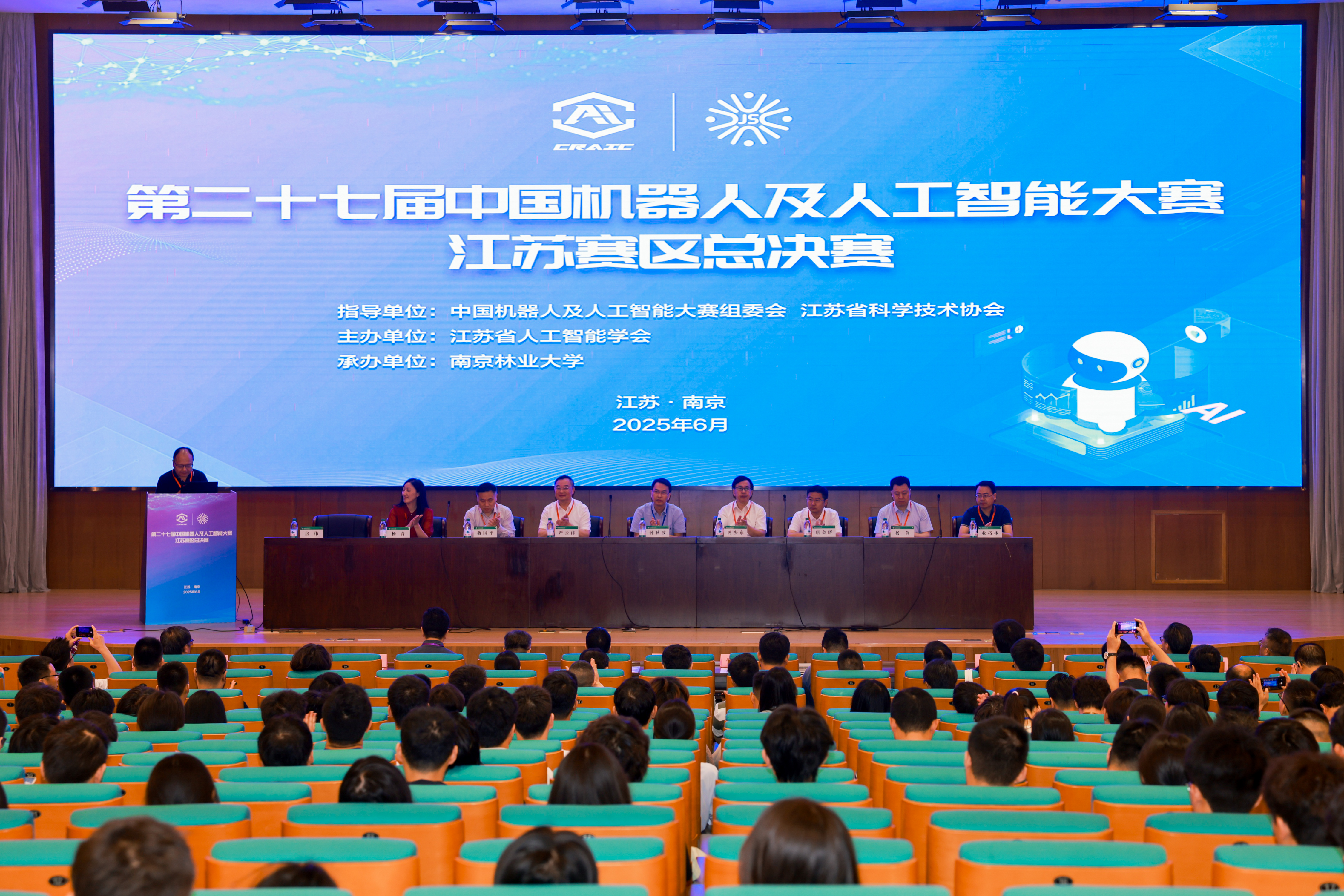 6月8日,由中国机器人及人工智能大赛组委会、江苏省科学技术协会指导,江苏省人工智能学会主办,百家乐在线游戏 承办的第二十七届中国机器人及人工智能大赛总决赛江苏赛区暨第五届江苏省机器人及人工智能大赛在我校开幕。我校副校长唐金辉,江苏省人工智能学会副理事长、淮阴工学院党委常委、副校长严云洋,江苏省科学技术协会党组成员、副主席冯少东,中国机器人及人工智能大赛国赛组委会裁判长钟秋波,江苏省人工智能学会副理事长、南京邮电大学党委副书记蒋国平,江苏省人工智能学会秘书长房伟等出席开幕式,百家乐在线游戏 相关负责人以及专家评委、参赛师生代表等参加开幕式。
